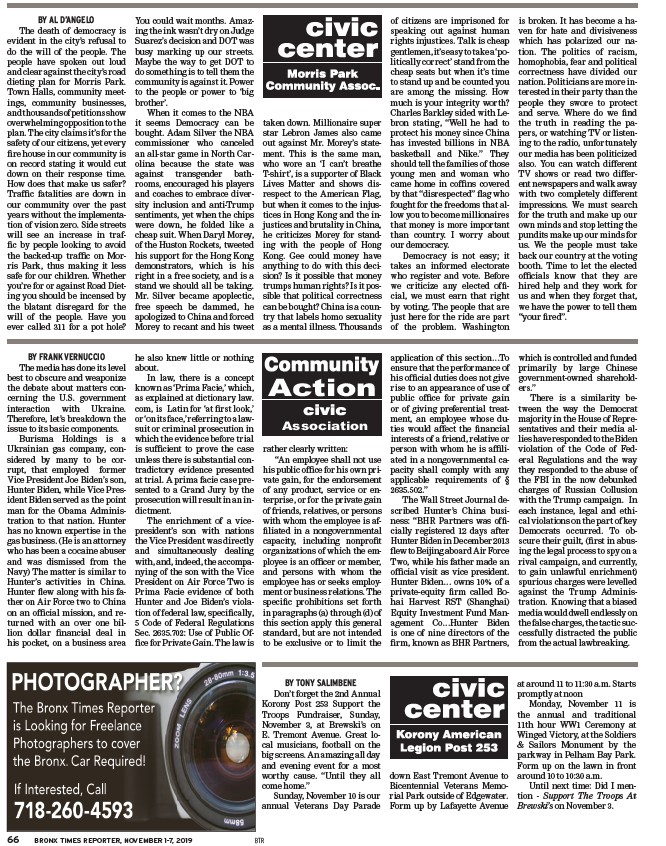 BRONX TIMES REPORTER, N 66 OVEMBER 1-7, 2019 BTR