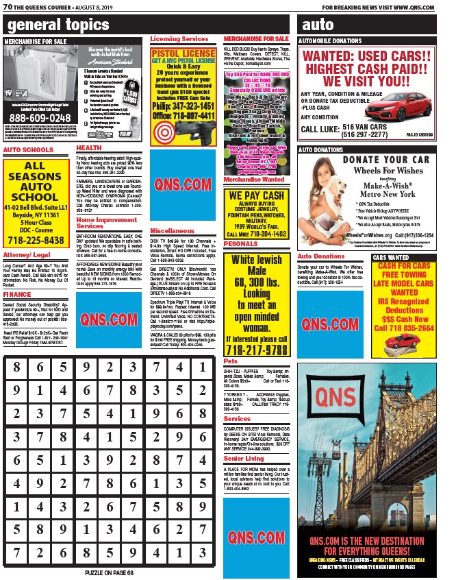 70 THE QUEENS COURIER • AUGUST 8, 2019 FOR BREAKING NEWS VISIT WWW.QNS.COM