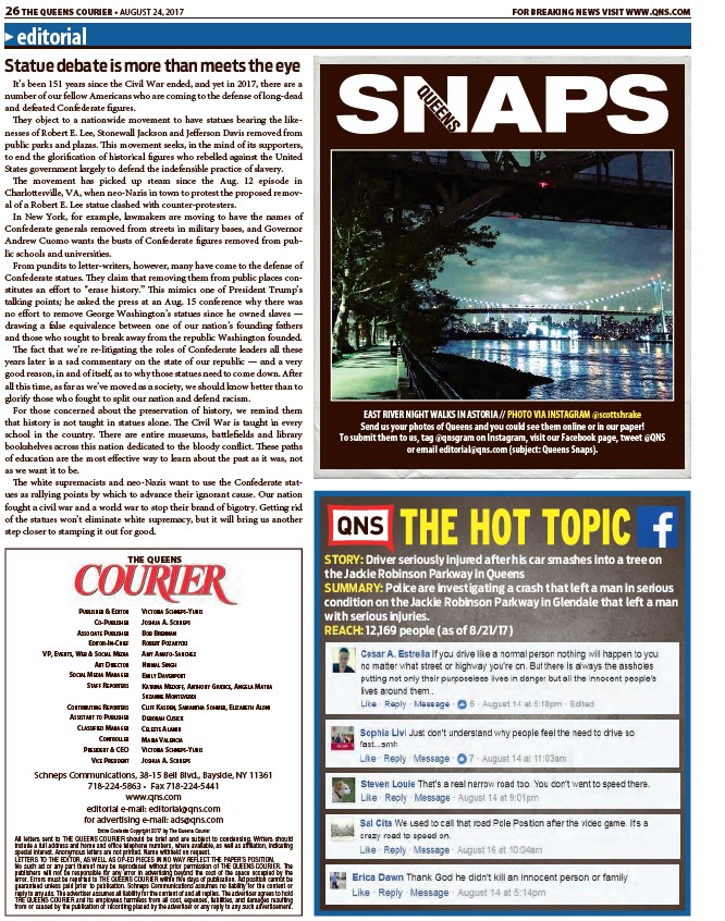 26 THE QUEENS COURIER • AUGUST 24, 2017 FOR BREAKING NEWS VISIT WWW.QNS.COM