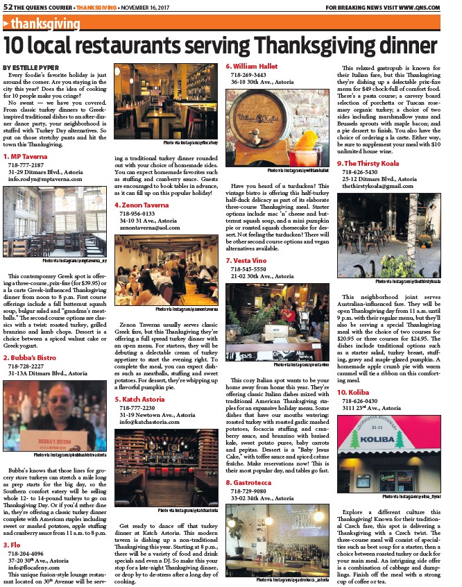 52 THE QUEENS COURIER • THANKSGIVING • NOVEMBER 16, 2017 FOR BREAKING NEWS VISIT WWW.QNS.COM