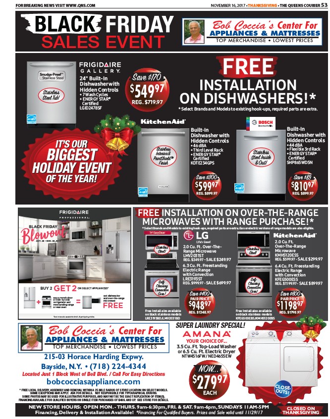 Financing, Delivery & Installation Available! *Financing For Qualified Buyers. Prices and Sale valid until 11/29/17