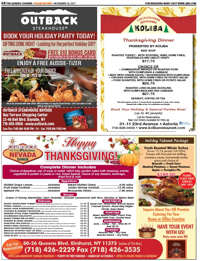 68 THE QUEENS COURIER • THANKSGIVING • NOVEMBER 16, 2017 FOR BREAKING NEWS VISIT WWW.QNS.COM