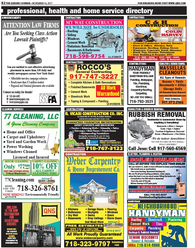 82 THE QUEENS COURIER • NOVEMBER 16, 2017 FOR BREAKING NEWS VISIT WWW.QNS.COM